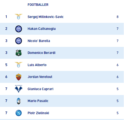 Радунович (Кальяри) — Бремер (Торино), Паломино (Аталанта), Кьеллини (Ювентус) - Калабрия (Милан), Барелла (Интер), Мандрагора (Торино), Лазович (Верона) — Оливейра (Рома), Абрахам (Рома), Мертенс (Наполи)
