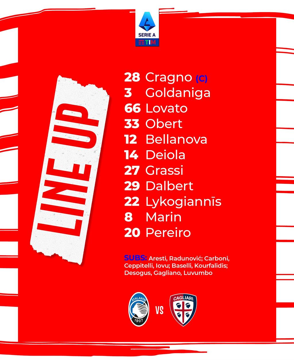 В рамках 24 тура итальянской Серии А Аталанта Дома сыграет против Кальяри.