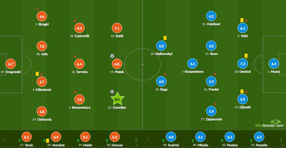 В этой встрече 28-летний украинец вышел в стартовом составе команды Джан Пьеро Гасперини и отыграл весь матч.