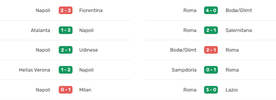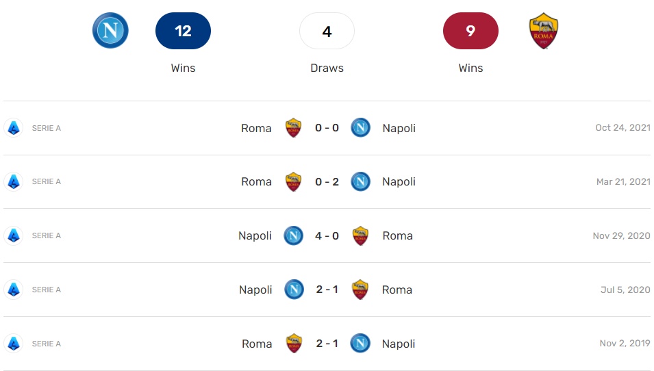 Однак і в чемпіонаті Італії у Роми все останнім часом складається більш ніж успішно у плані результатів, про що говорить серія без поразок, що складається з 11 поєдинків поспіль (7 перемог, 4 нічиї). Востаннє "вовки" програвали супернику в Серії А аж 9 січня цього року, коли поступилися Ювентусу. Серед перемог підопічних Жозе Моуріньо варто відзначити успіх проти Аталанти і, звичайно ж, розгром Лаціо в римському дербі, однак варто пам'ятати, що гравці Наполі підходять до майбутнього матчу у кращих фізичних кондиціях через вищезгаданий поєдинок Роми в Лізі конференцій у середині минулого тижня.