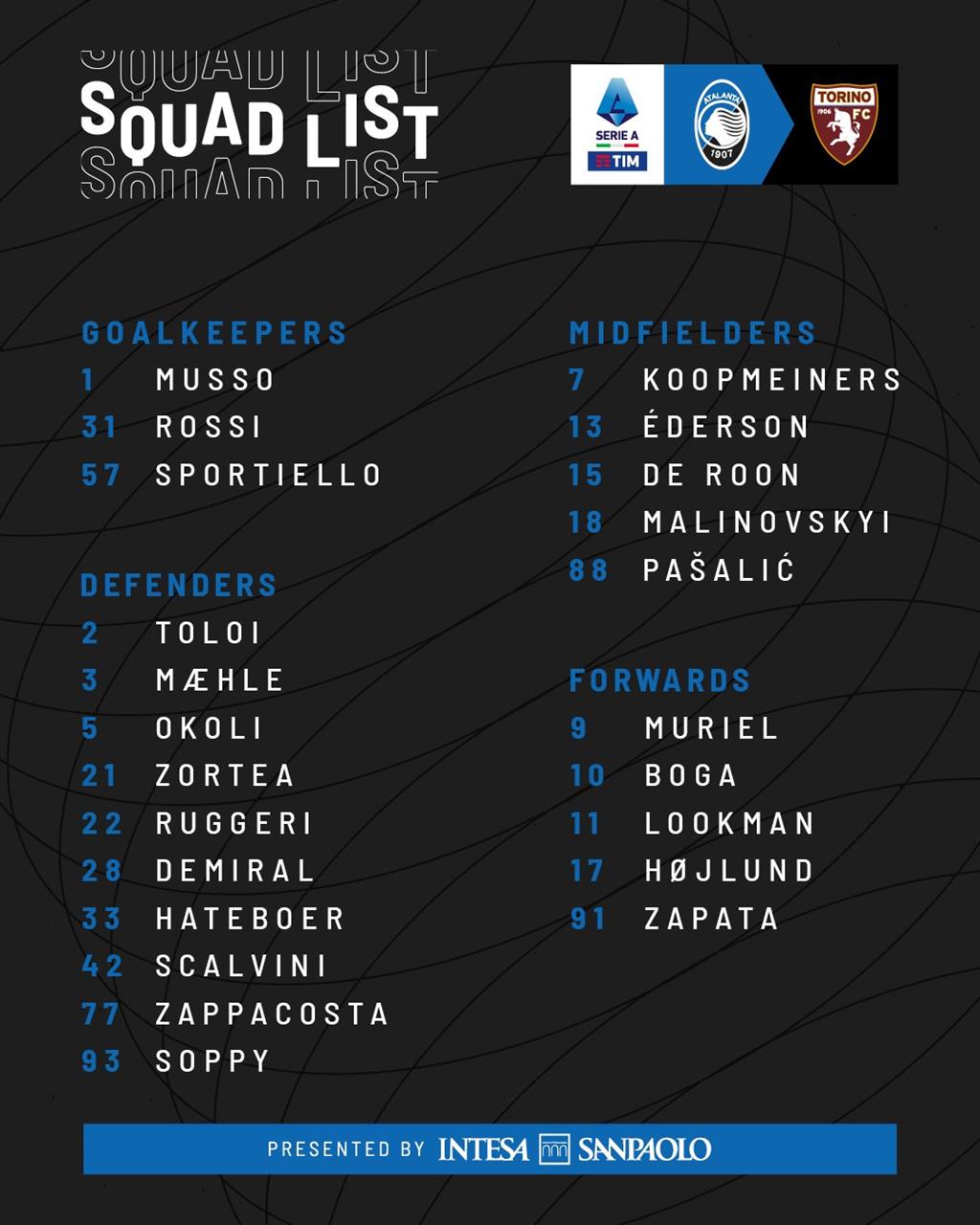 Український півзахисник Руслан Маліновський потрапив до заявки Аталанти на матч четвертого туру італійської Серії А проти Торіно.