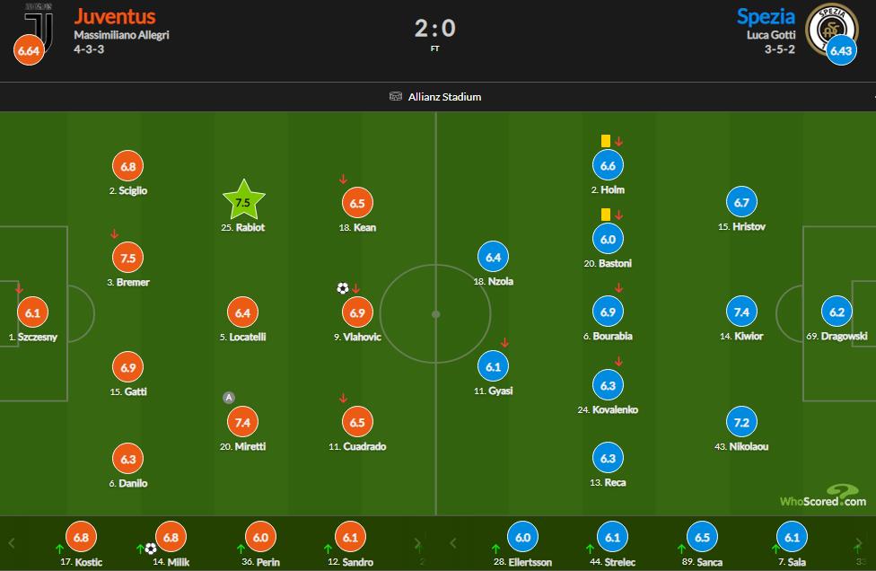 У складі "старої синьйори" голами відзначилися Влахович і Мілік, які відзначилися на 9 та 91 хвилинах відповідно.