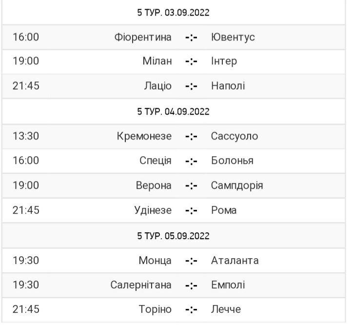 ІТАЛІЯ. СЕРІЯ А, 4 ТУР
