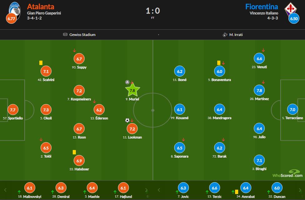 Найкращим гравцем був визнаний нападник Аталанти Луїс Муріель – 7,8 балів.