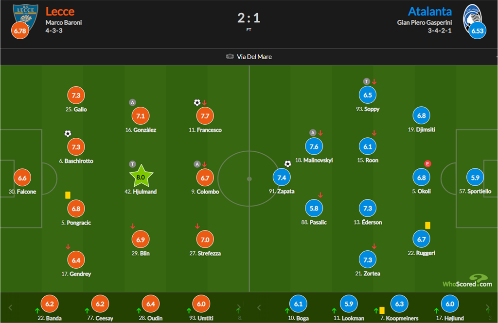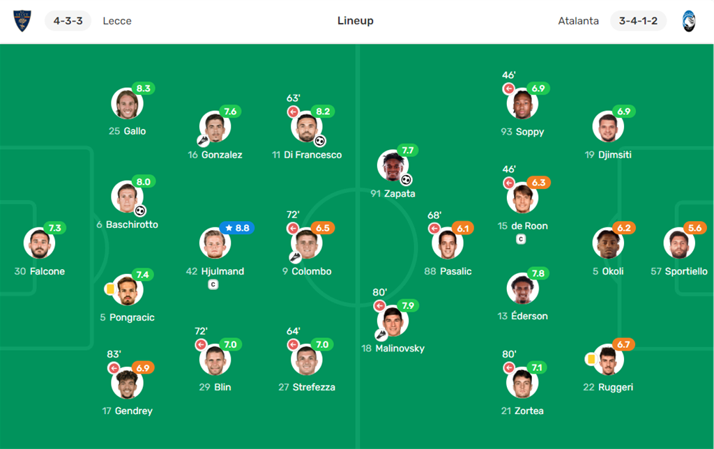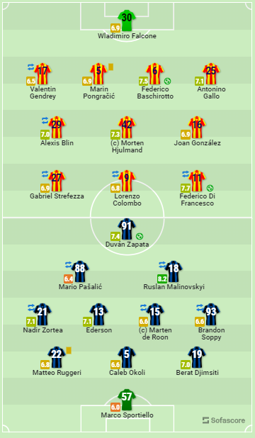 У цьому протистоянні до стартового складу бергамасків повернувся український півзахисник Руслан Маліновський, який віддав асист на Дувана Сапату в моменті з єдиним голом своєї команди.