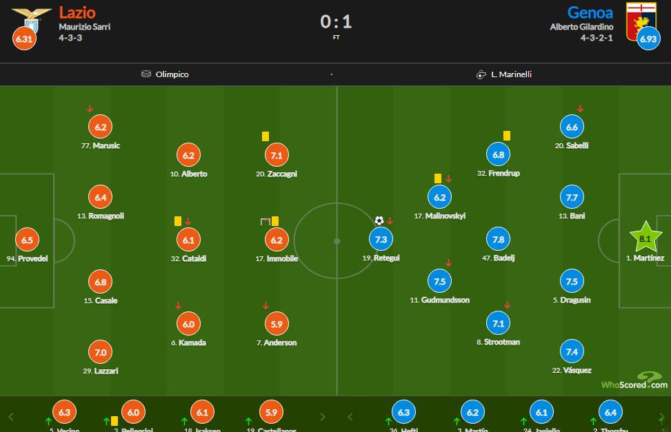 Дженоа у матчі другого туру італійської Серії А сенсаційно обіграла Лаціо (1:0).