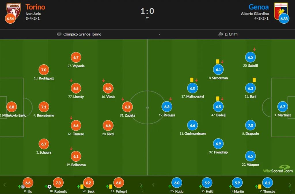 У цьому поєдинку взяв участь український півзахисник Дженоа Руслан Маліновський, який вийшов у стартовому складі та провів на полі 58 хвилин.