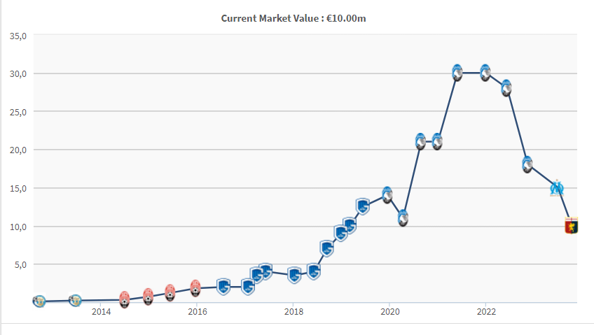 Згідно з останніми оновленнями за 11 жовтня 2023 року, орієнтовна вартість 30-річного українця стала меншою на 5 мільйонів євро.