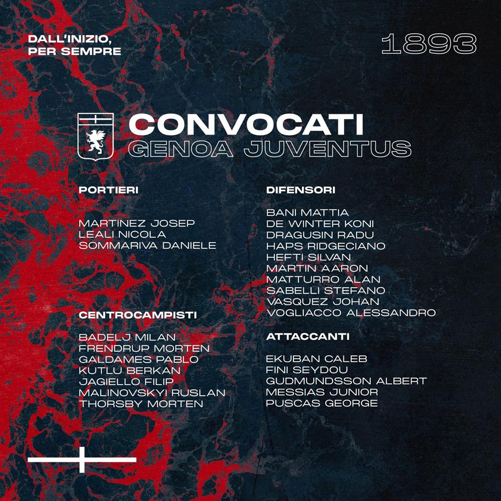 ЗАЯВКА ДЖЕНОА НА МАТЧ ІЗ ЮВЕНТУСОМ: