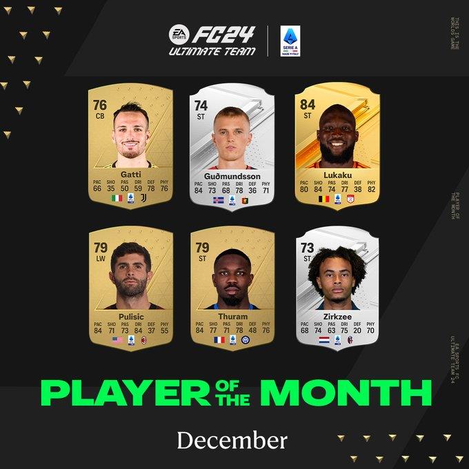 У італійській Серії A визначився список претендентів на звання найкращого гравця грудня.