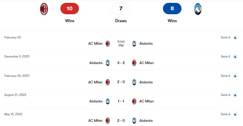 Очікується, що Аталанта буде мотивованою у Кубку Італії та виставить більш основний склад, ніж Мілан.