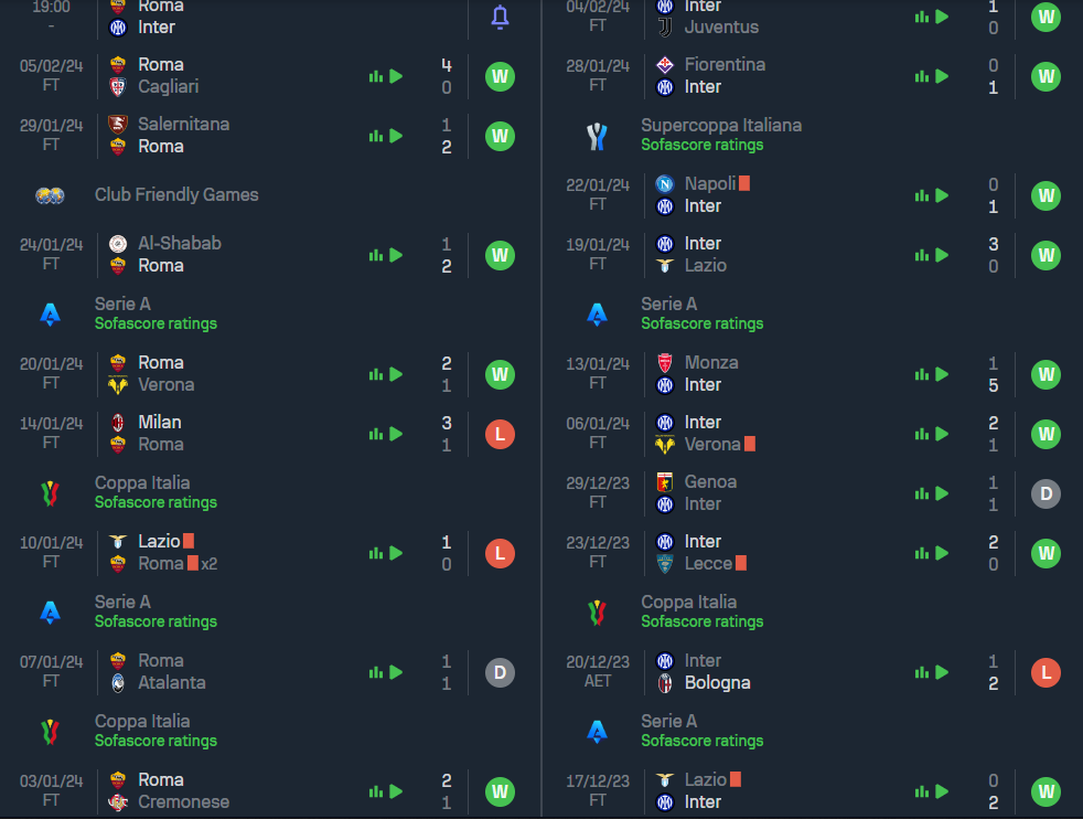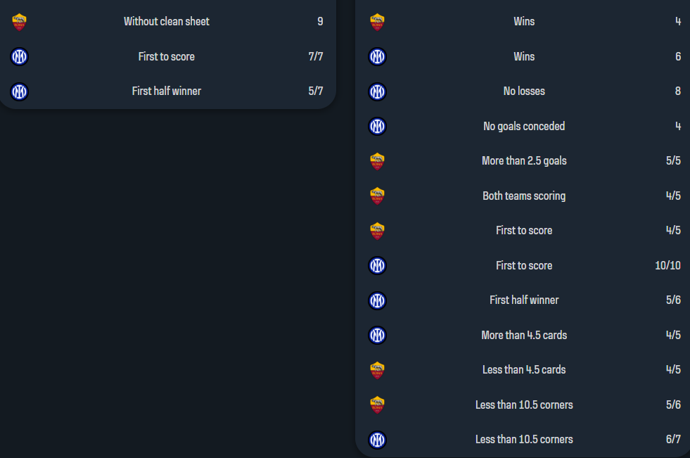 Звісно, треба зважати на перевагу власного поля для "джаллороссі", бо де, як не на Стадіо Олімпіко, вони мають перемагати в дійсно великих протистояннях. Історія зустрічей поміж цими командами справді вражає. І, що цікаво, дві з трьох найбільших перемог за кількістю забитих голів (6:0) належать саме міланцям — у 1930 та 1950.