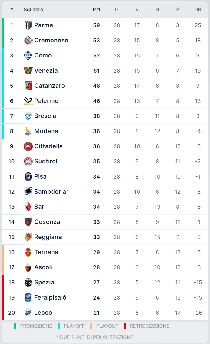 Почнемо з італійської Серії Б, де цими вихідними, 2-3 березня, завершився 28-й тур. У кожної з команд попереду ще 10 матчів, тож саме час починати визначати потенційних новачків сезону-2024/25 Серії А.