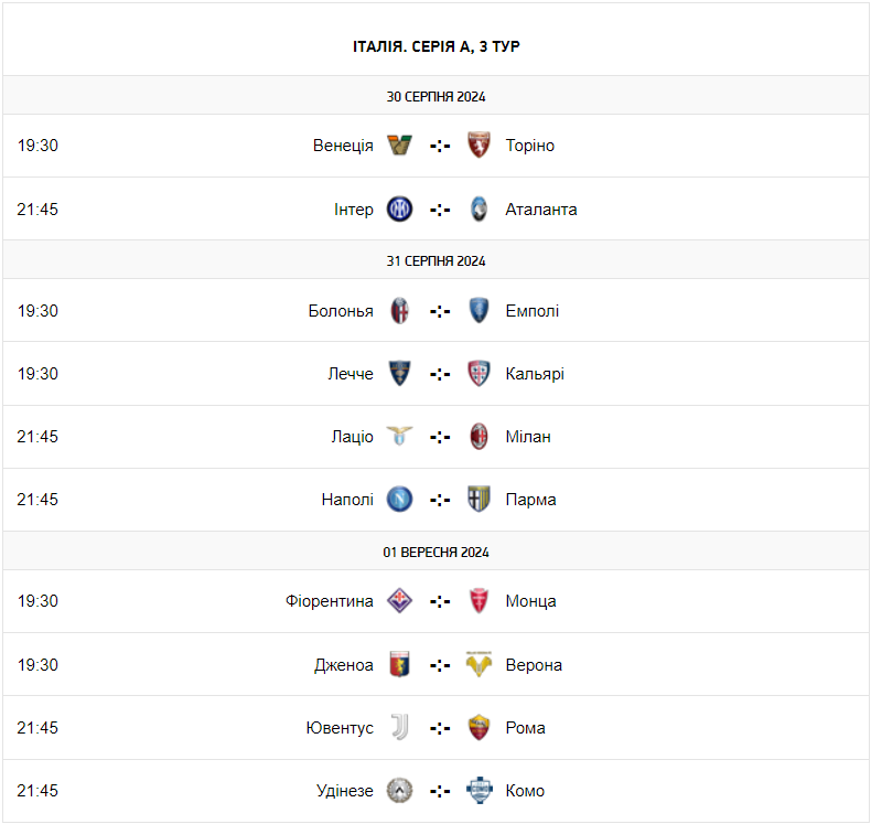 * розклад усіх матчів Серії А-2024/25 доступний на Football.ua за посиланням.