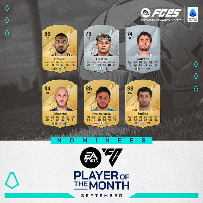 Італійська Серія А на своєму офіційному сайті оголосила імена футболістів, які претендують на звання найкращого гравця чемпіонату за підсумками вересня.