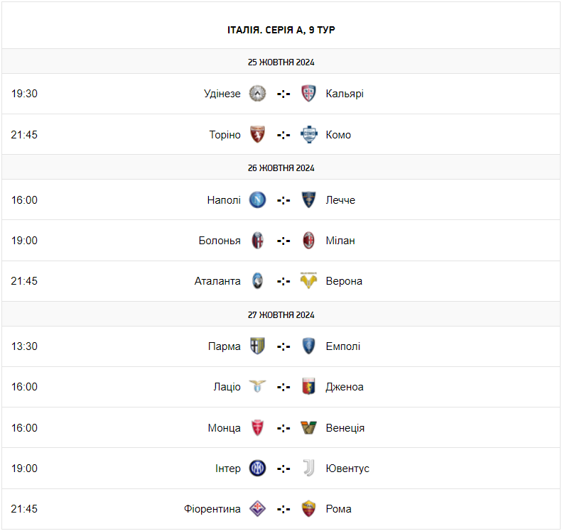 * розклад усіх матчів Серії А-2024/25 доступний на Football.ua за посиланням.