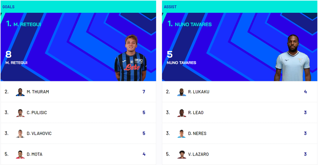 Окрім Матео Ретегі лише Карл Ааге Гансен забив бодай 8 голів за Аталанту в перших восьми турах кампанії Серії А (сезон-1949/50, 9 голів).