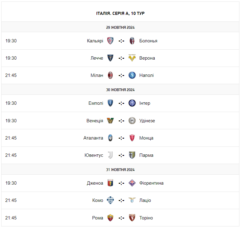 * розклад усіх матчів Серії А-2024/25 доступний на Football.ua за посиланням.