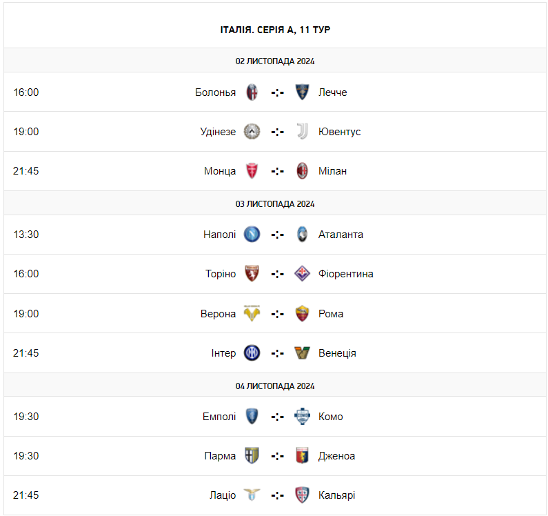 * розклад усіх матчів Серії А-2024/25 доступний на Football.ua за посиланням.