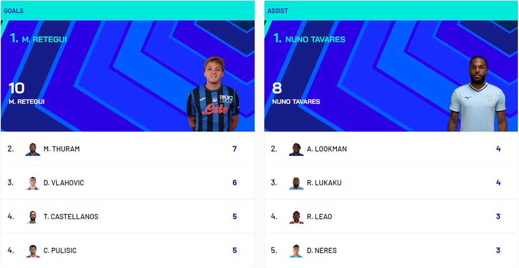 Матео Ретегі в жовтні відзначився 9-ма результативними діями (6+3) в Серії А. Протягом останніх 20 років жоден гравець не мав кращого показника в цьому місяці (9 також у Чіро Іммобіле в 2017 і 2019).