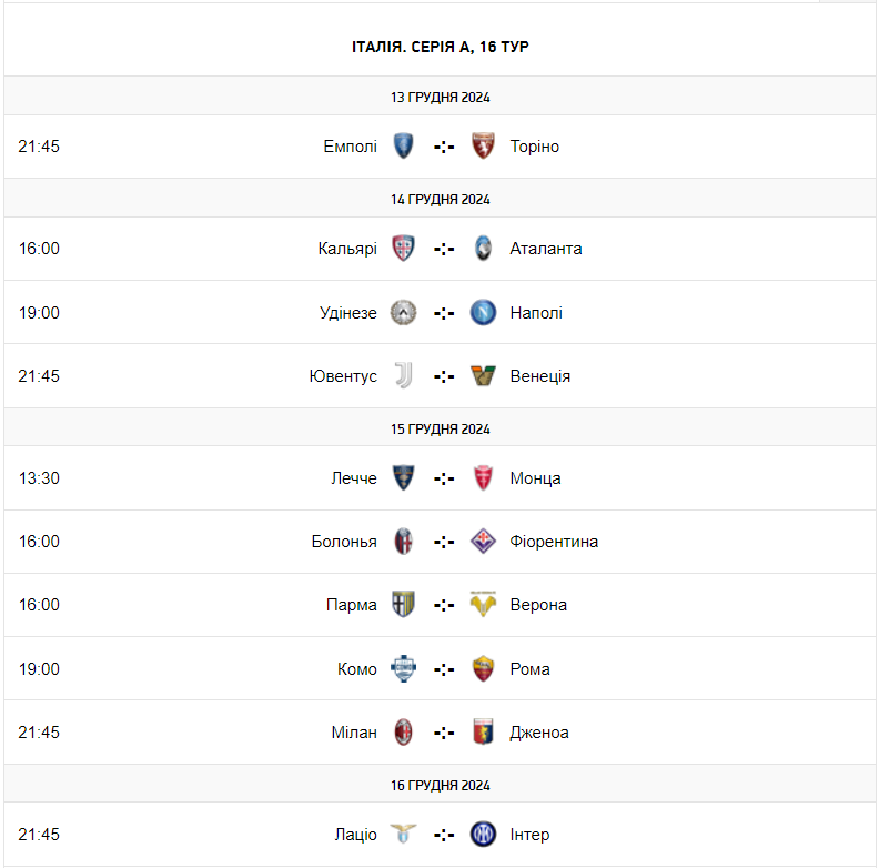 * розклад усіх матчів Серії А-2024/25 доступний на Football.ua за посиланням.