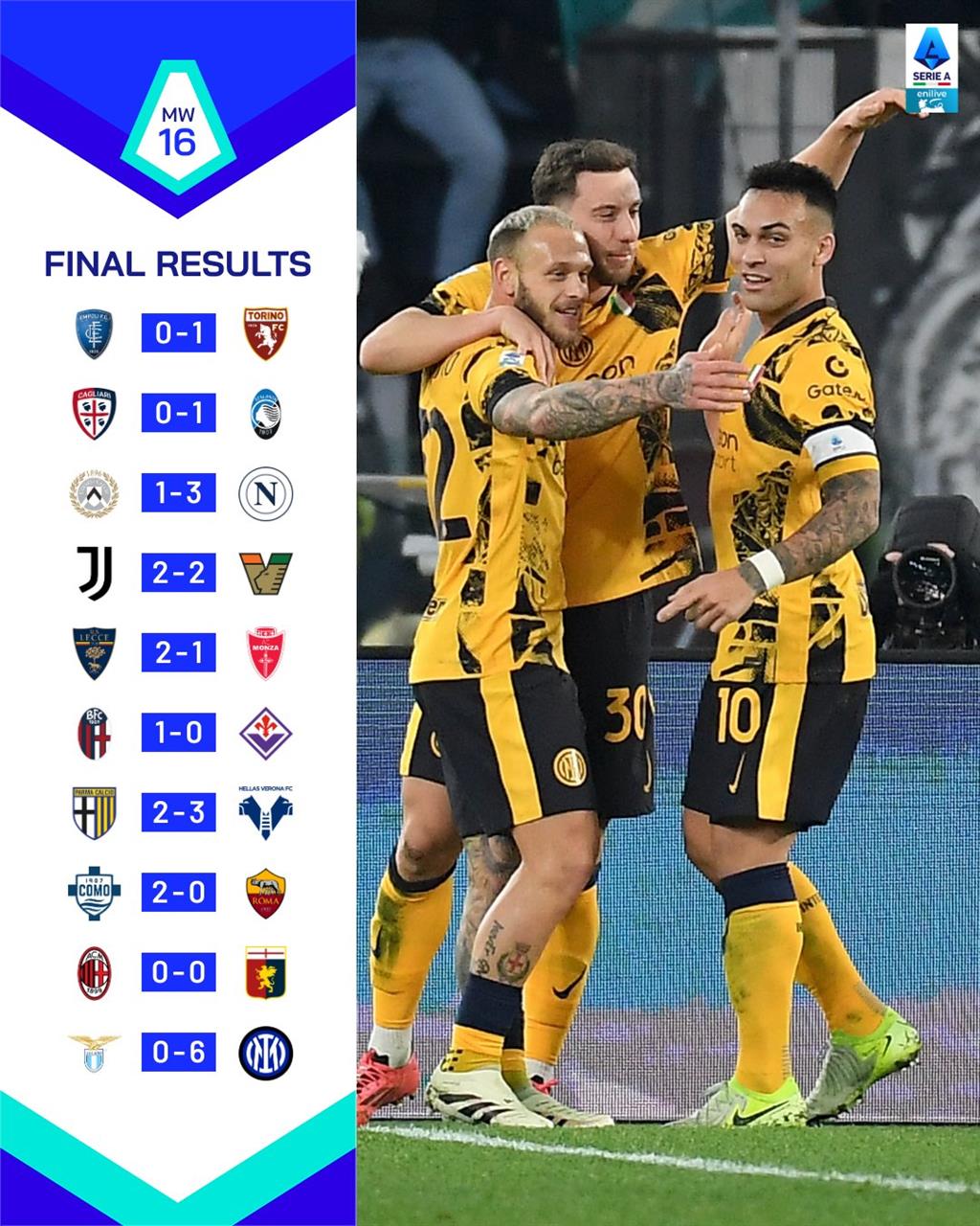 Центральний матч 16-го туру Серії А проходив на Стадіо Олімпіко в понеділок. Чергова зустріч Інтера під керівництвом Сімоне Індзагі з Лаціо, його колишнім колективом, мала бути боєм до останнього, але столичний клуб розчарував усіх, зазнавши розгромної невдачі, якою й не пахло протягом стартових 30 хвилин поєдинку. Тим не менш, ближче до завершення першого тайму "нерадзуррі" встигли аж двічі уразити ворота римлян.