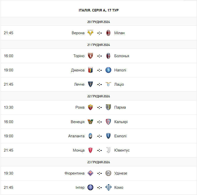 * розклад усіх матчів Серії А-2024/25 доступний на Football.ua за посиланням.