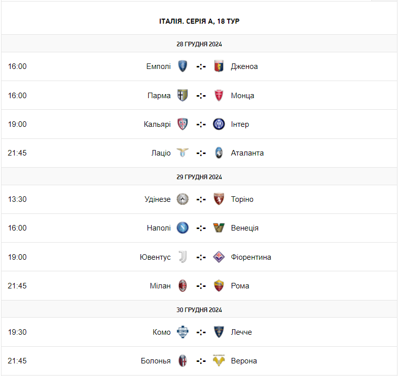* розклад усіх матчів Серії А-2024/25 доступний на Football.ua за посиланням.