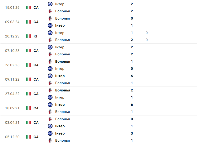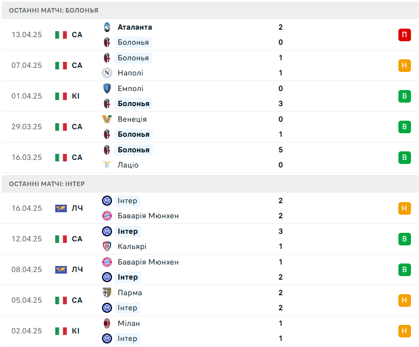 У рамках 33-го туру італійської Серії А-2024/25 Болонья на власному полі зустрінеться з Інтером.