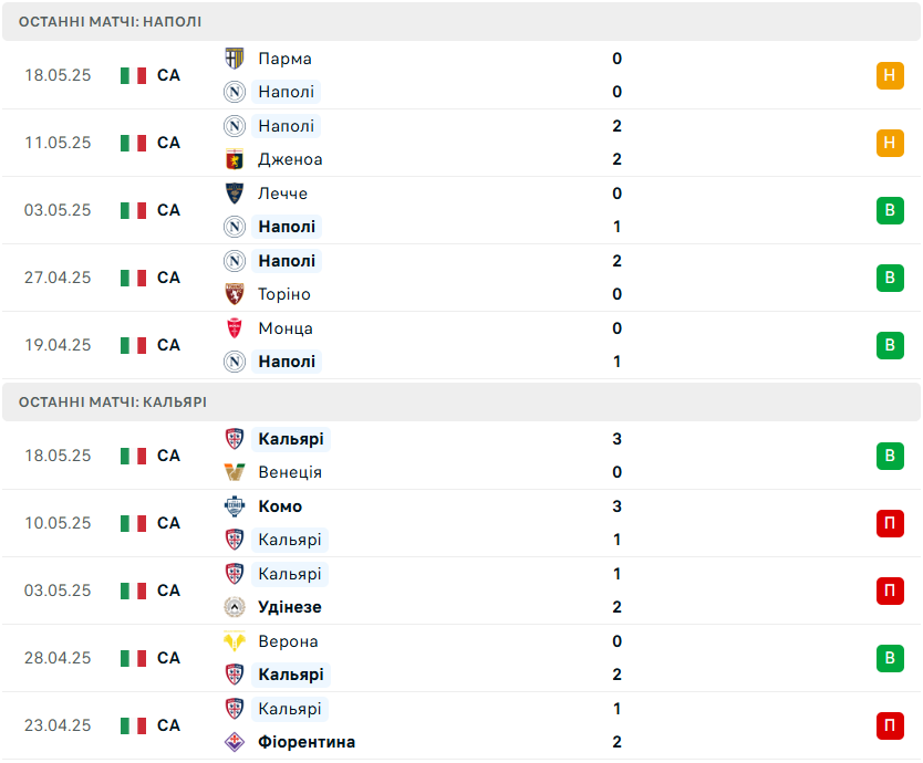 У рамках останнього, 38-го туру італійської Серії А-2024/25 Наполі на власному полі зустрінеться з Кальярі.