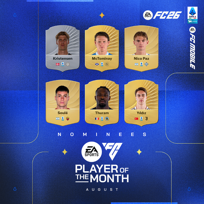 Офіційний сайт італійської Серії А оприлюднив перелік із шести претендентів на звання найкращого гравця турніру за підсумками серпня 2025 року.