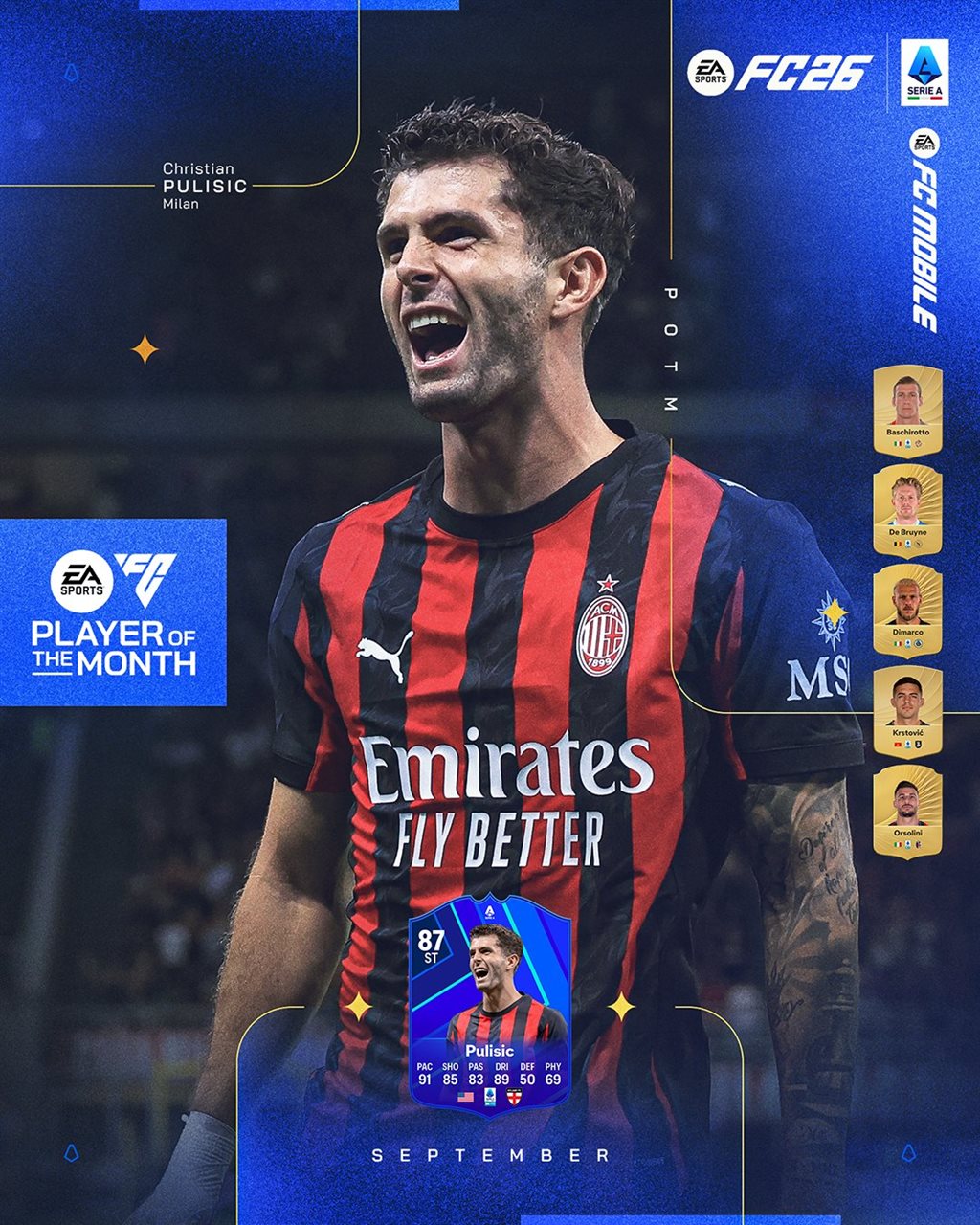 ""Три голи і дві гольові передачі за 147 хвилин — це внесок Крістіана Пулішича у фантастичний вересень Мілана", — заявив генеральний директор Серії А Луїджі Де С'єрво.