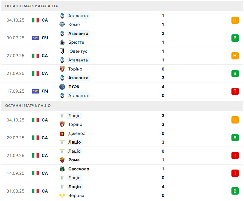 У рамках сьомого туру італійської Серії А-2025/26 Аталанта в Бергамо прийматиме римський Лаціо.