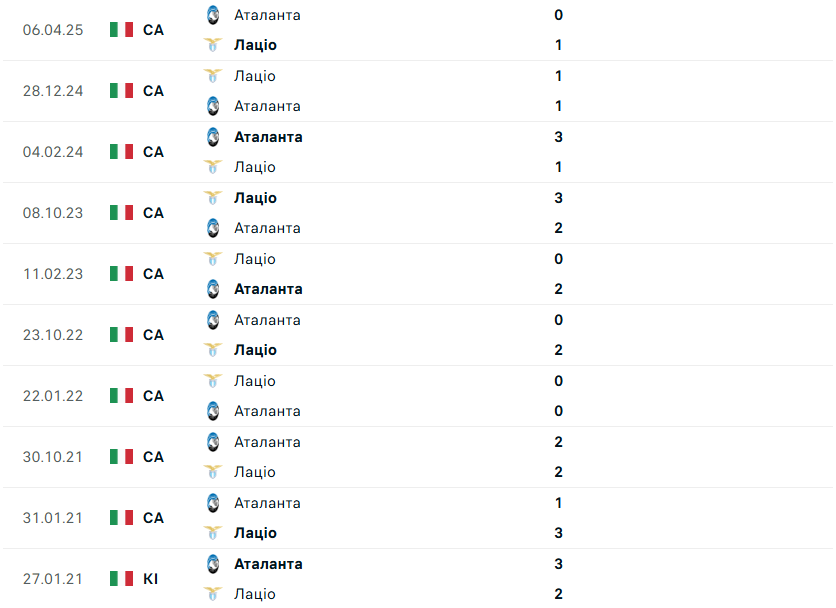 Якраз нічийні результати є найменш поширеним підсумком подібних протистоянь у Ломбардії. Так, у попередніх 20-ти домашніх матчах Серії А проти Лаціо Аталанта вісім разів святкувала перемогу, сім разів поступилася й п'ять разів поділила зі столичним суперником залікові бали. П'ять із семи вищезгаданих звитяг "б'янкочелесті" були "сухими".