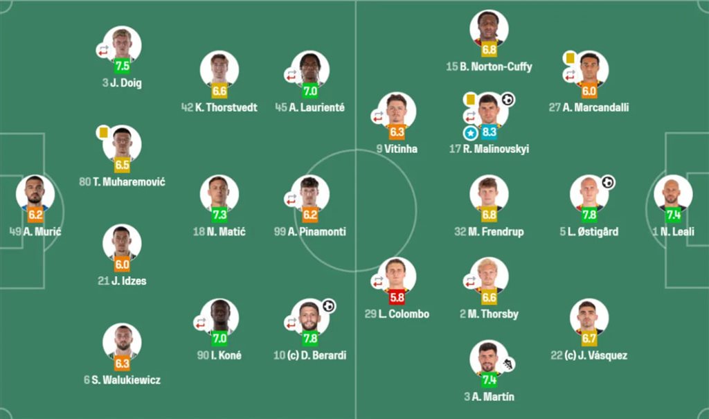 Український півзахисник Дженоа Руслан Маліновський став ключовою фігурою у переможному матчі 10-го туру італійської Серії А проти Сассуоло (2:1). Малиновський відкрив рахунок на 18-й хвилині, а його виступ отримав найвищу оцінку серед усіх гравців матчу – 8.3 за версією статистичного порталу. Водночас портал WhoScored оцінив його гру у 6.2, хоча всі футболісти поєдинку отримали схожі низькі бали (6.0–6.3).