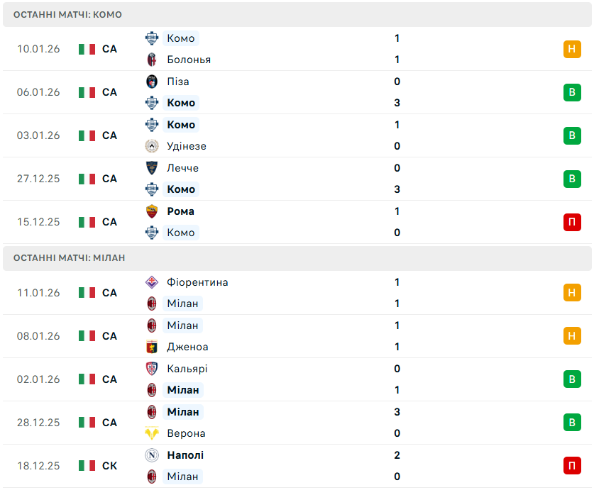 У рамках 16-го туру італійської Серії А-2025/26 у Комо місцевий однойменний клуб прийматиме Мілан.