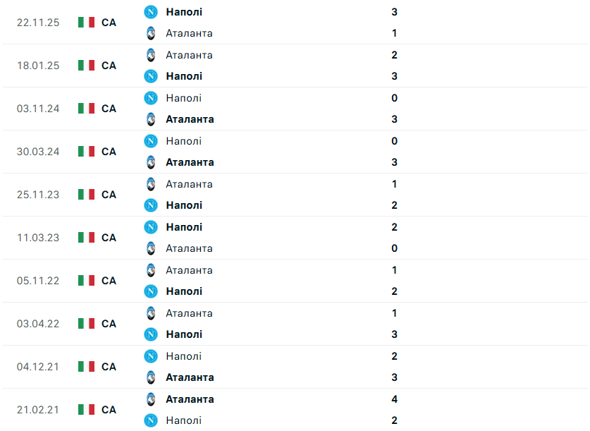 У рамках 26-го туру італійської Серії А-2025/26 у Бергамо місцева Аталанта прийматиме неаполітанський Наполі.