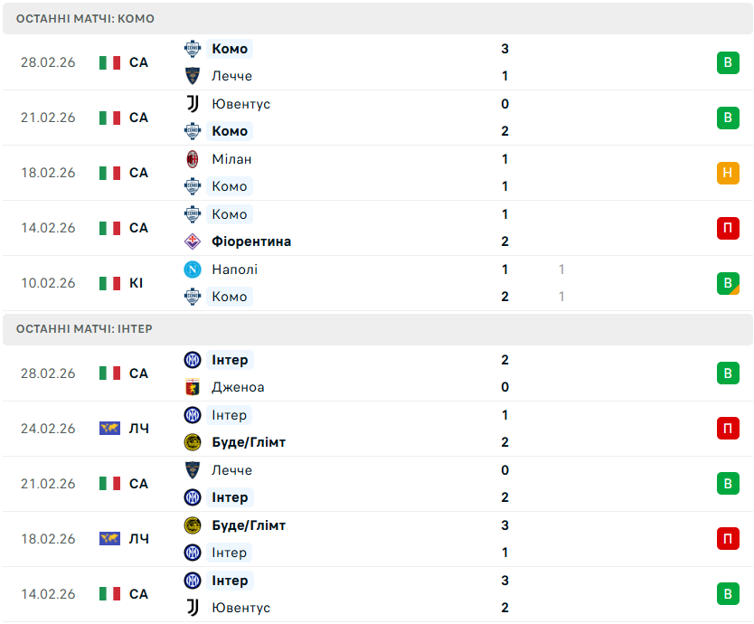 У рамках 1/2 фіналу Кубка Італії-2025/26 у Комо місцевий однойменний клуб прийматиме міланський Інтер (перша з двох очних зустрічей).