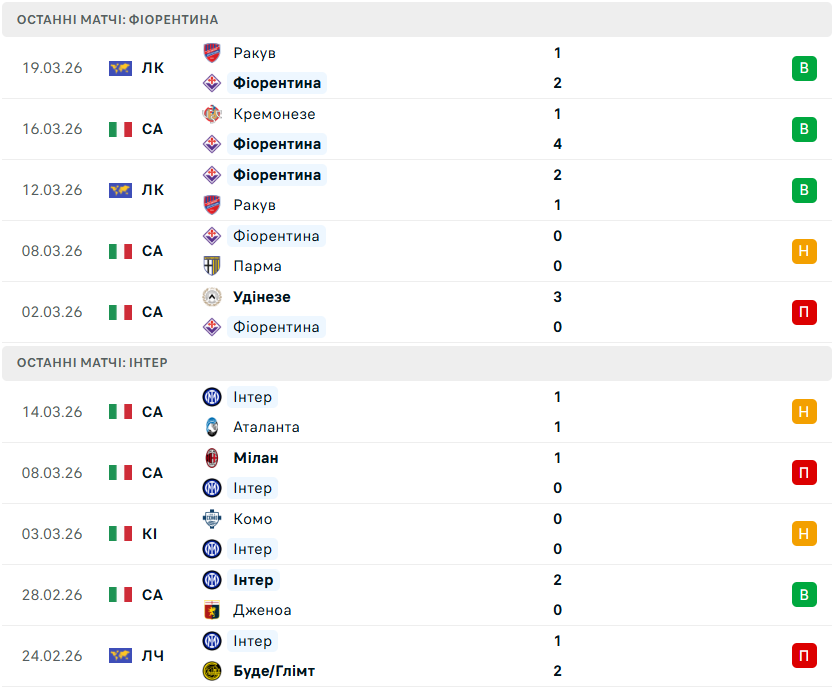 У рамках 30-го туру італійської Серії А-2025/26 у Флоренції місцева Фіорентина прийматиме міланський Інтер.