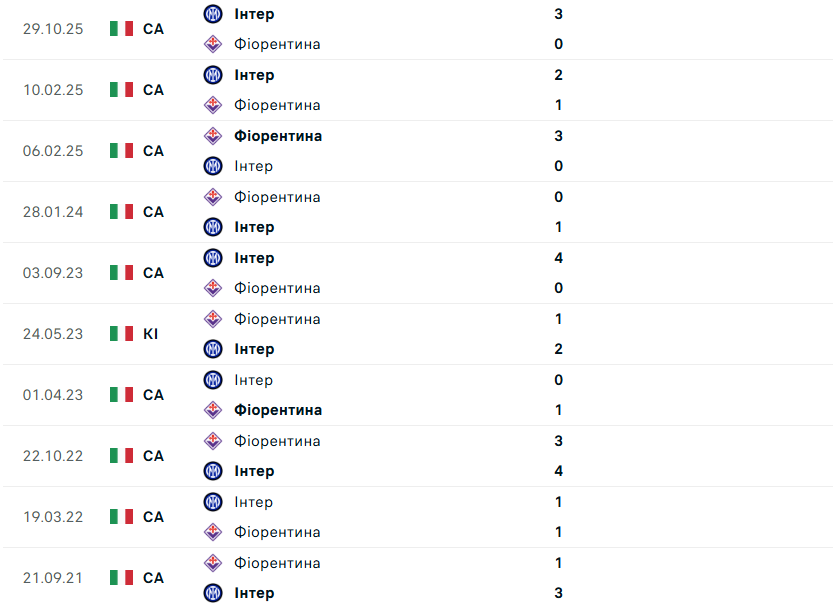 Тоді, у лютому 2025 року міланський гранд уперше із сезону-2016/17 поступився флорентійцям на виїзді після трьох нічиїх і чотирьох перемог. Сьогодні ж Інтер, на тлі втрати очок у матчі проти Аталанти вдома (1:1) туром раніше, має намір повернути восьмиочкову перевагу над "червоно-чорним" сусідом, який до п'яти скоротив її домашньою звитягою над Торіно (3:2) вчора.