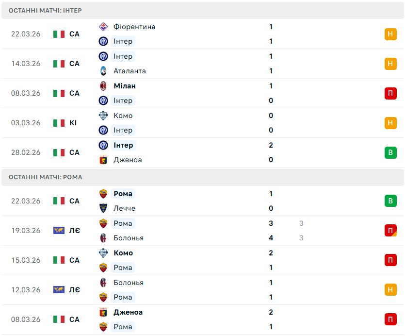 У рамках 31-го туру італійської Серії А-2025/26 у Мілані місцевий Інтер прийматиме римську Рому.