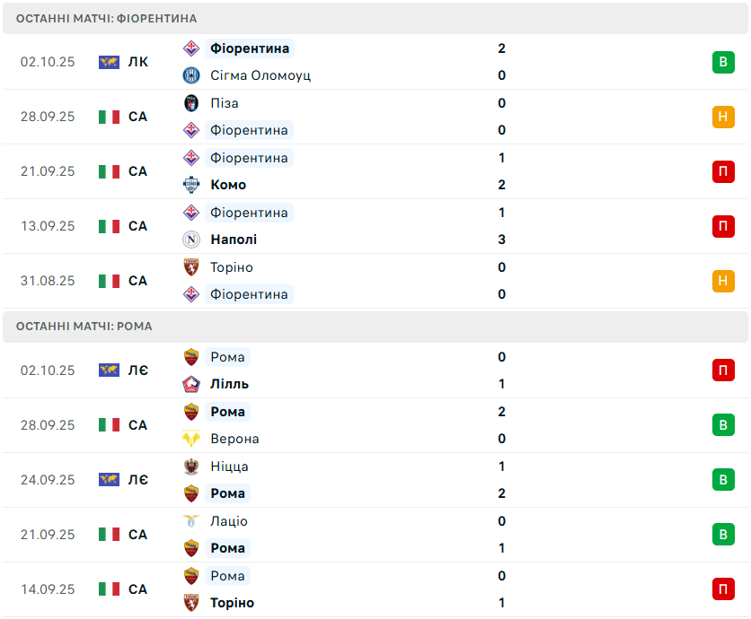 У рамках шостого туру італійської Серії А-2025/26 флорентійська Фіорентина прийматиме римську Рому.
