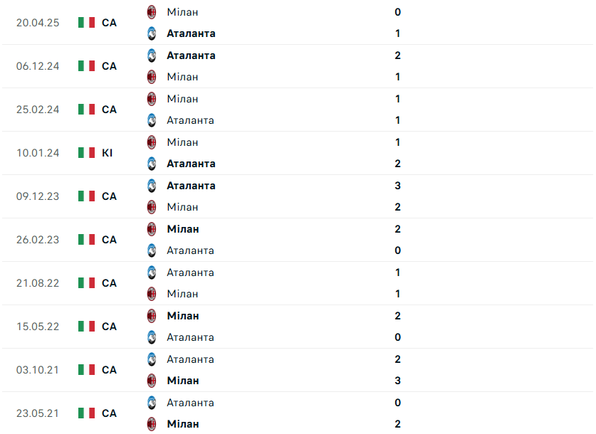 Мілан у п'ятницю приймав Пізу й ледь не поступився їй. Нічию з рахунком 2:2 команді Массіміліано Аллегрі в компенсований час матчу приніс дебютний гол літнього новачка Закарі Атекаме. "Россонері" не можуть дозволити собі подібного в Бергамо. Сьогодні вони сподіватимуться обіграти місцевий клуб уперше з лютого 2023 року (1Н, 4П).