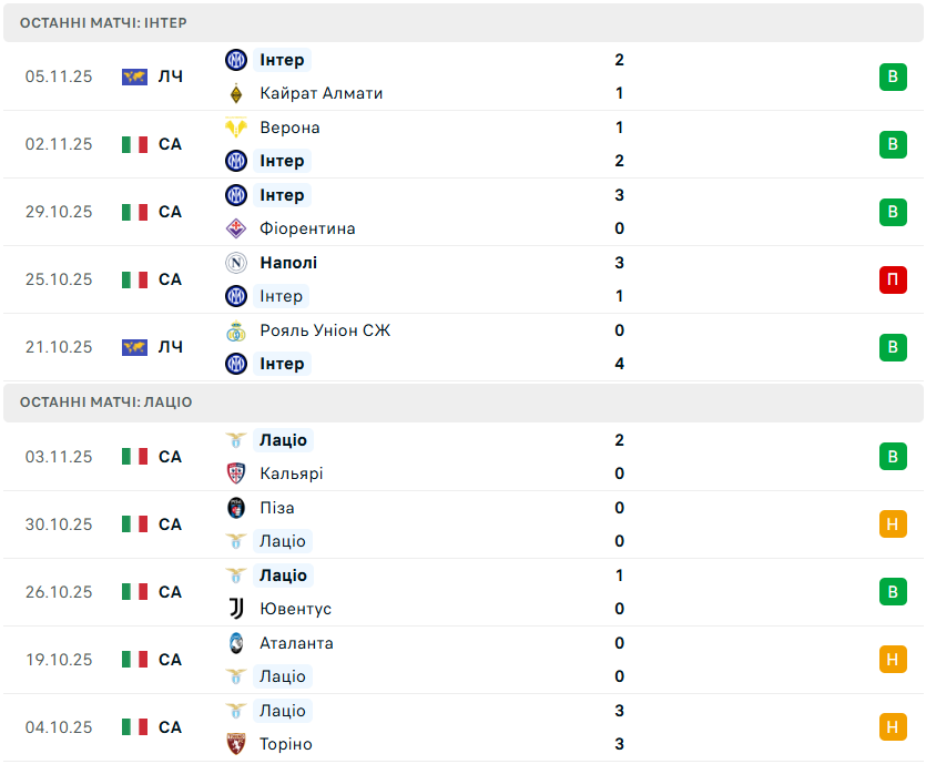 У рамках 11-го туру італійської Серії А-2025/26 міланський Інтер прийматиме римський Лаціо.