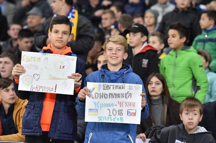 Сборная Украины провела открытую тренировку для болельщиков на стадионе Металлист в Харькове.
