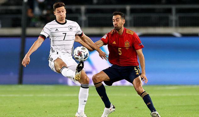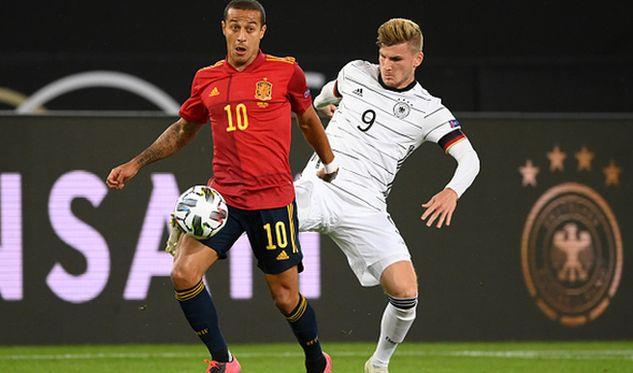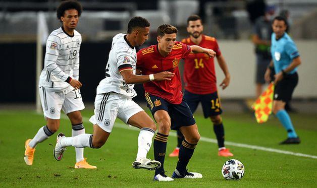Пока сборная Украины сражалась со Швейцарией, в параллельном матче группы 4 дивизиона А Лиги наций встречались Германия и Испания. Обе команды подошли к отчетному поединку далеко не в оптимальных составах, но зато главные тренеры могли проверить взаимодействия между другими игроками, включая дебютантов сборных. Сразу же после стартового свистка испанцы забрали мяч под свой контроль, но вовсе не торопились идти в атаку. Со временем Бундестим перехватила инициативу и не стала церемониться с соперником, часто нанося удары по воротам.