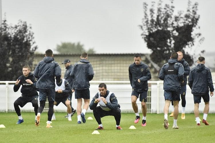 Первая тренировка сборной проходила под осенним дождем на местом Стад де Бургонь, где играет местная регбийная команда. Задачей первого интенсивного занятия было выравнивание функционального состояния игроков.