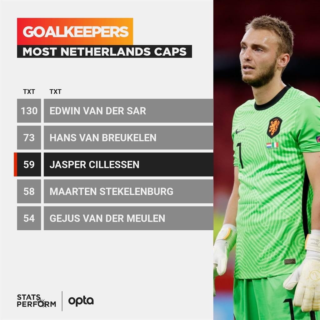 В матче третьего тура Лиги наций против Боснии и Герцеговины вратарь сборной Нидерландов Яспер Силлессен вошел в тройку вратарей, сыгравших наибольшее количество матчей за эту национальную команду — сообщает ОРТА.