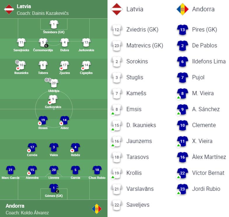 Спершу на 81-й хвилині знову відзначився Улдрікіс, оформивши тим самим дубль, а остаточно знищив шанси Андорри на успіх Яніс Ікауньєкс лише за хвилину після минулого голу. Таким чином, Латвія здобула розгромну перемогу над Андоррою з рахунком 3:0.