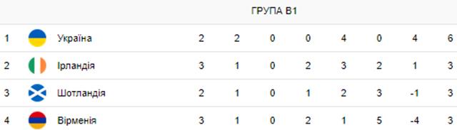 Таким чином, Україна після трьох турів, у яких зіграла два матчі, очолила групу В1 Ліги націй, набравши шість очок. Позаду у трьох команд по три очки — Ірландія (три матчі), Шотландія (2 зустрічі) та Вірменія (три гри).